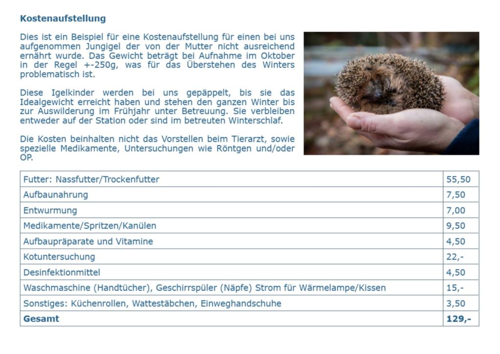 Nicht enthalten sind in obigen Liste die anteiligen Raumkosten.